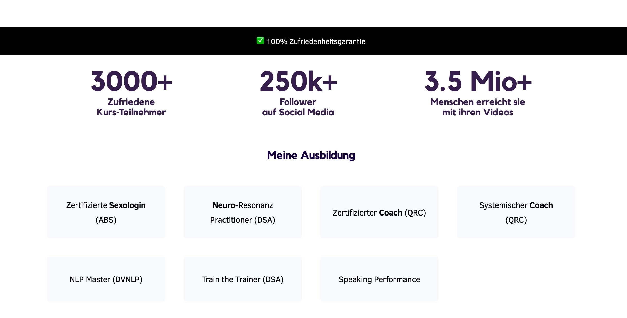 Als Teil unseres Teams wirst Du eng mit unserer Gründerin und S*xologin und Mentorin, Sonja, zusammenarbeiten. Sonja ist eine der erfolgreichsten Mentorinnen für Männer im deutschsprachigen Raum und hat es sich zur Aufgabe gemacht, Männern und Paaren dabei zu helfen, ihre Beziehungen auf ein neues Level zu heben. Mit mehr als 3500 zufriedenen Kurs-Teilnehmern, über 250k+ Followern auf Social Media und mehr als 8 Millionen Menschen, die sie durch ihre Social Media Kanäle erreicht, ist love to listen eine Kraft, die echte Veränderung bewirkt.